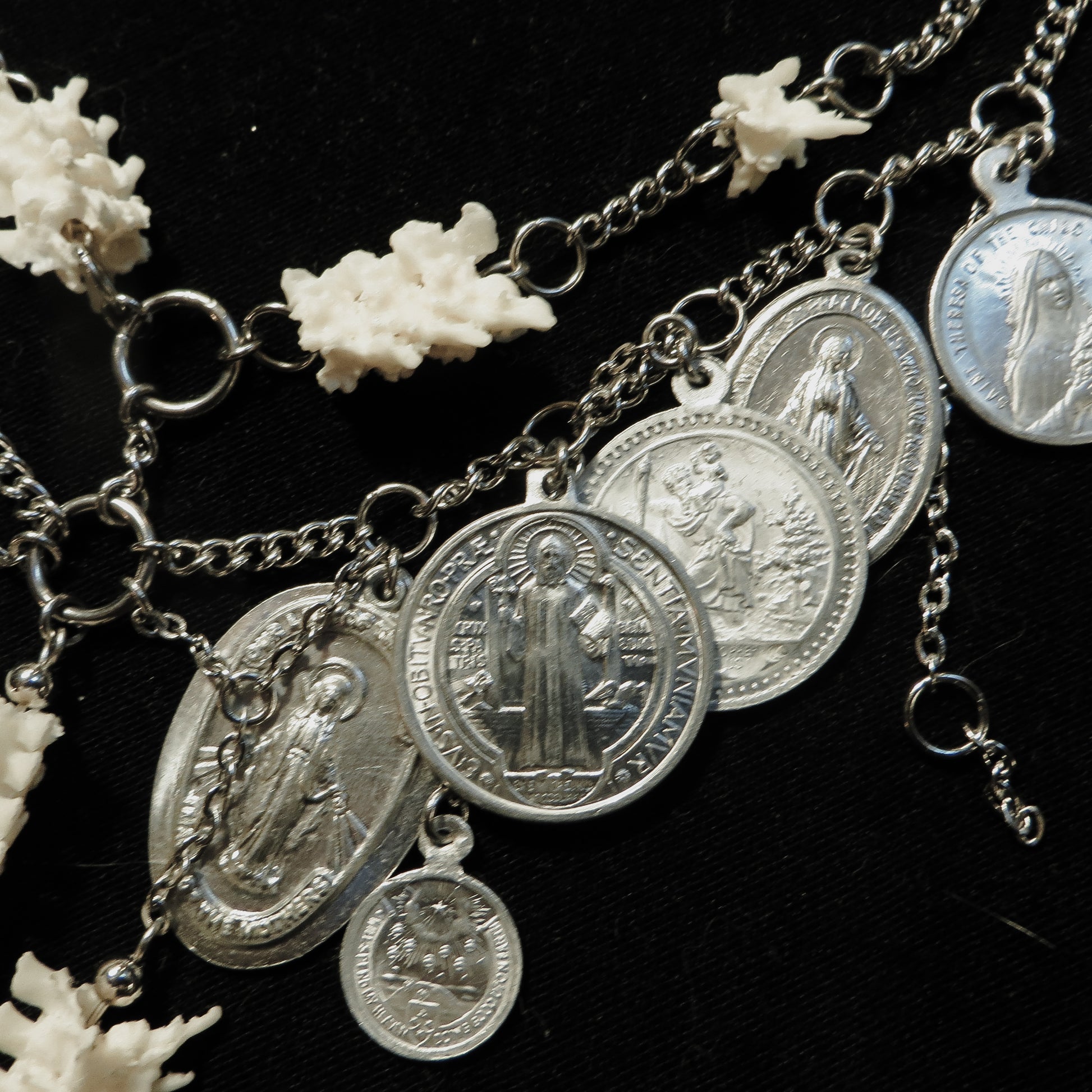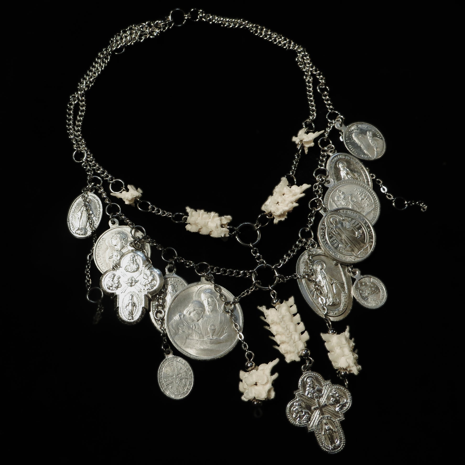 ⟡ The metal icons choker, but with all vintage aluminum charms. Made of charms, real snake vertebrae bones, and stainless steel findings. Please note, aluminum is much lighter and more thin that most other metals used in the metal icons choker series.