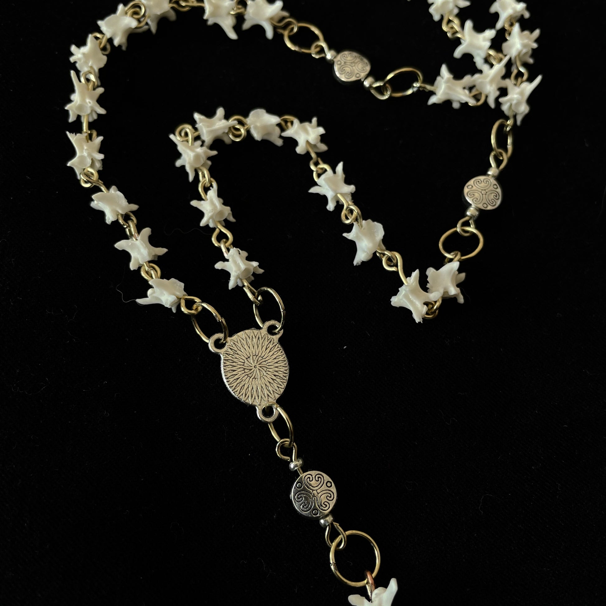 Bone rosary, silver & gold