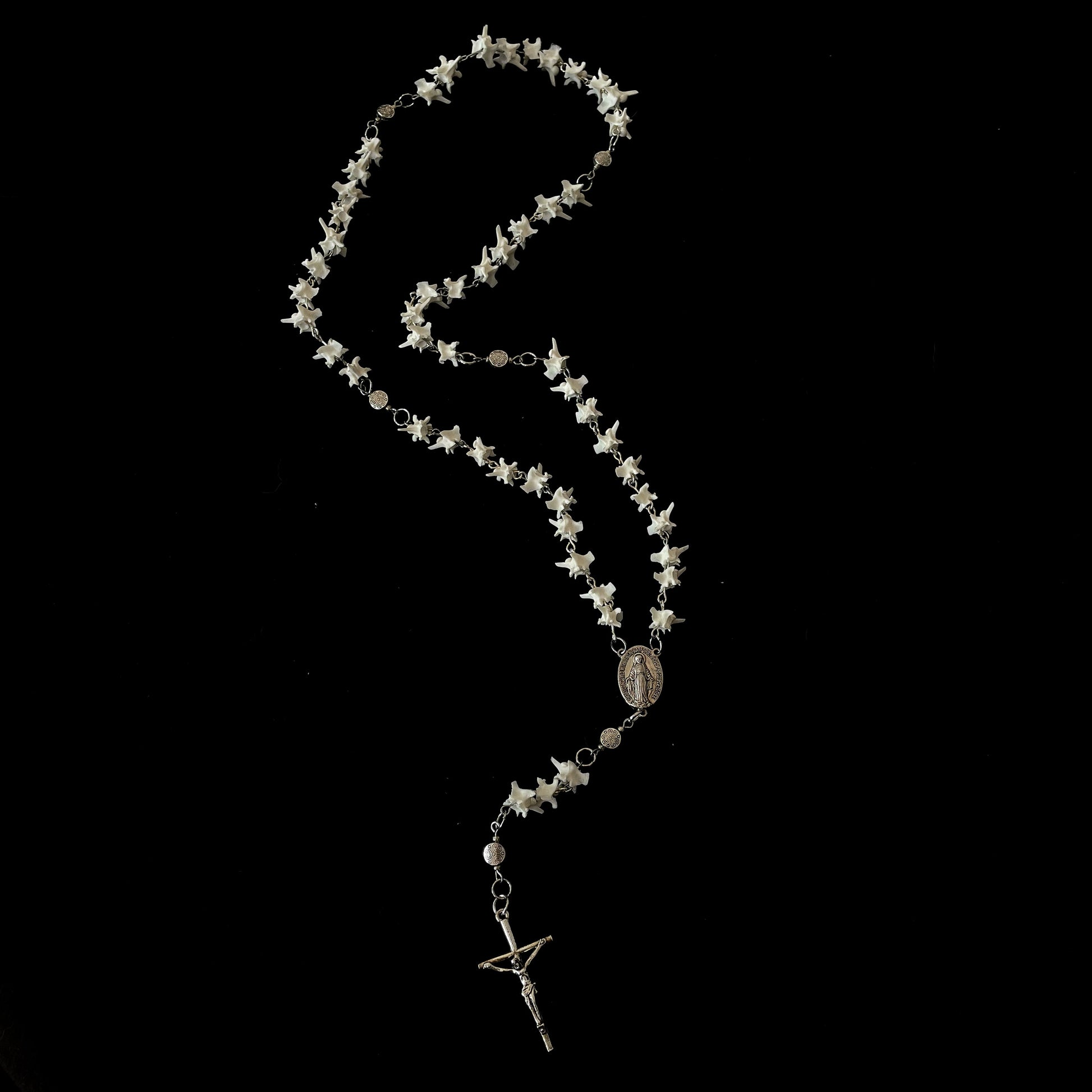 ✧ Each individual bone and bead is carefully wired by hand and connected to the whole. The necklace itself is about 26 inches around, and the bottom is an additional 5.5 inches that hangs down. Crucifix measures 1.5 inches