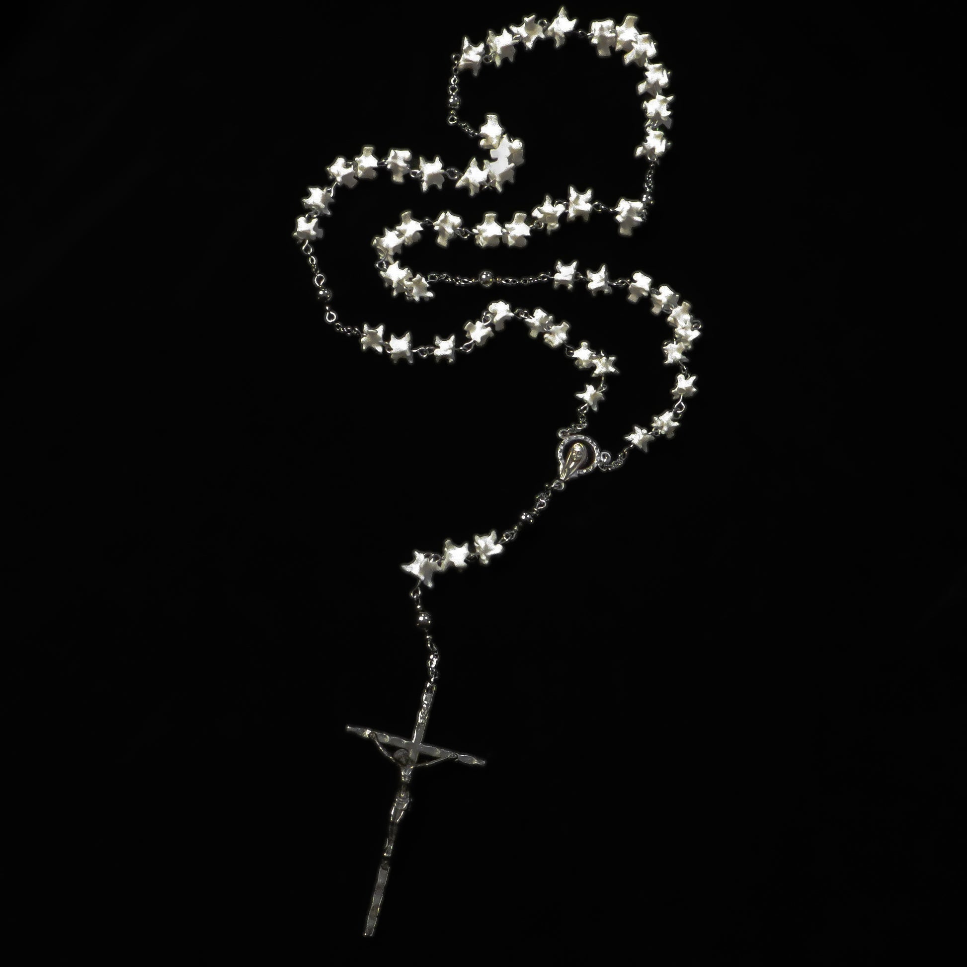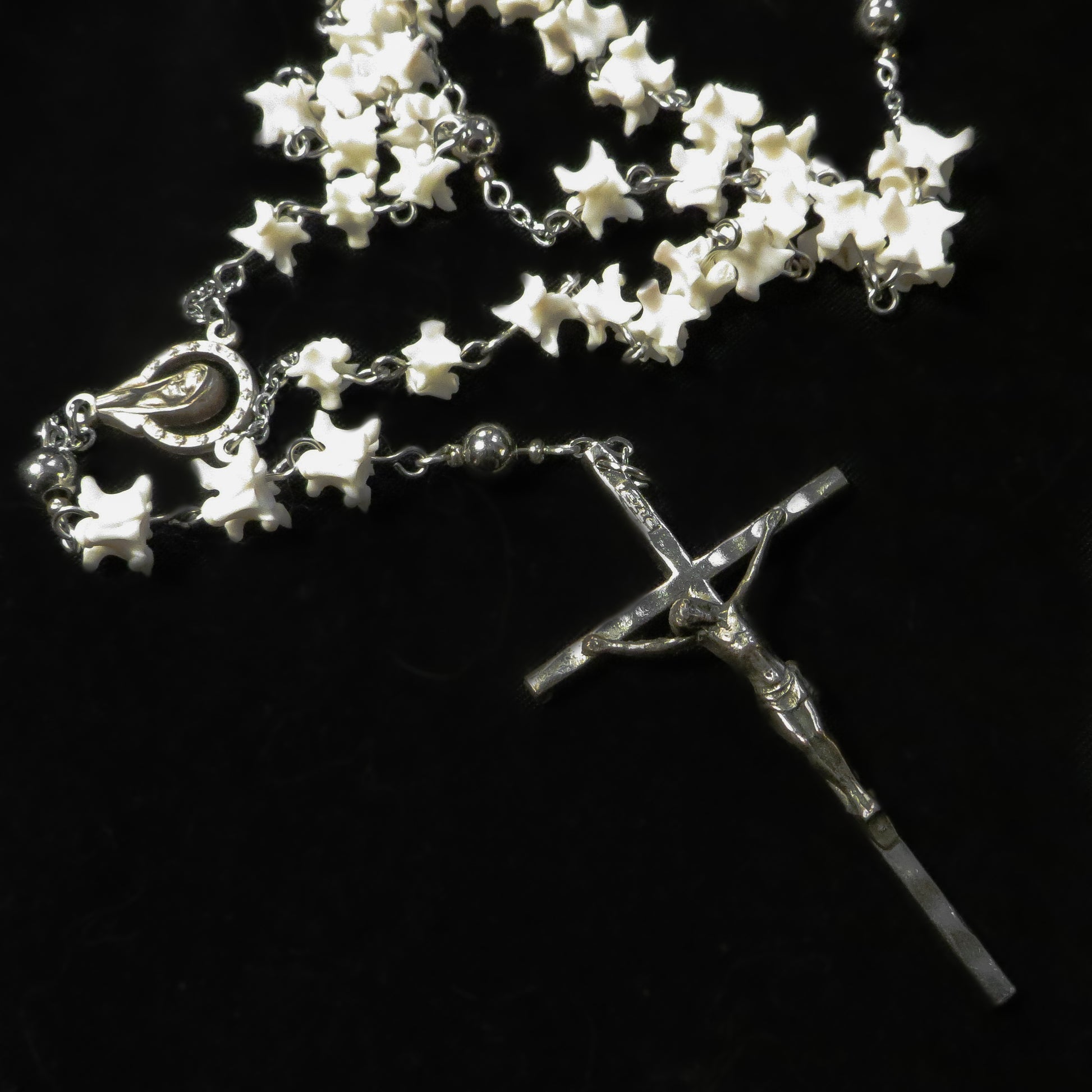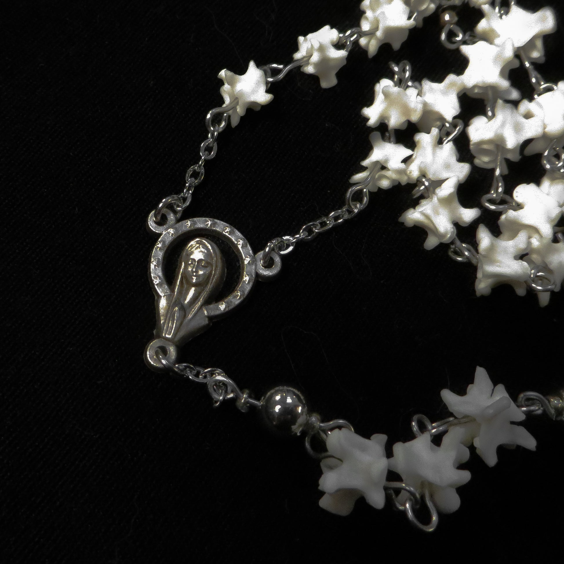 ⟡ Bone rosary made entirely out of real snake vertebrae bones, stainless steel separator beads, stainless steel wire, and vintage rosary centerpiece and crucifix.