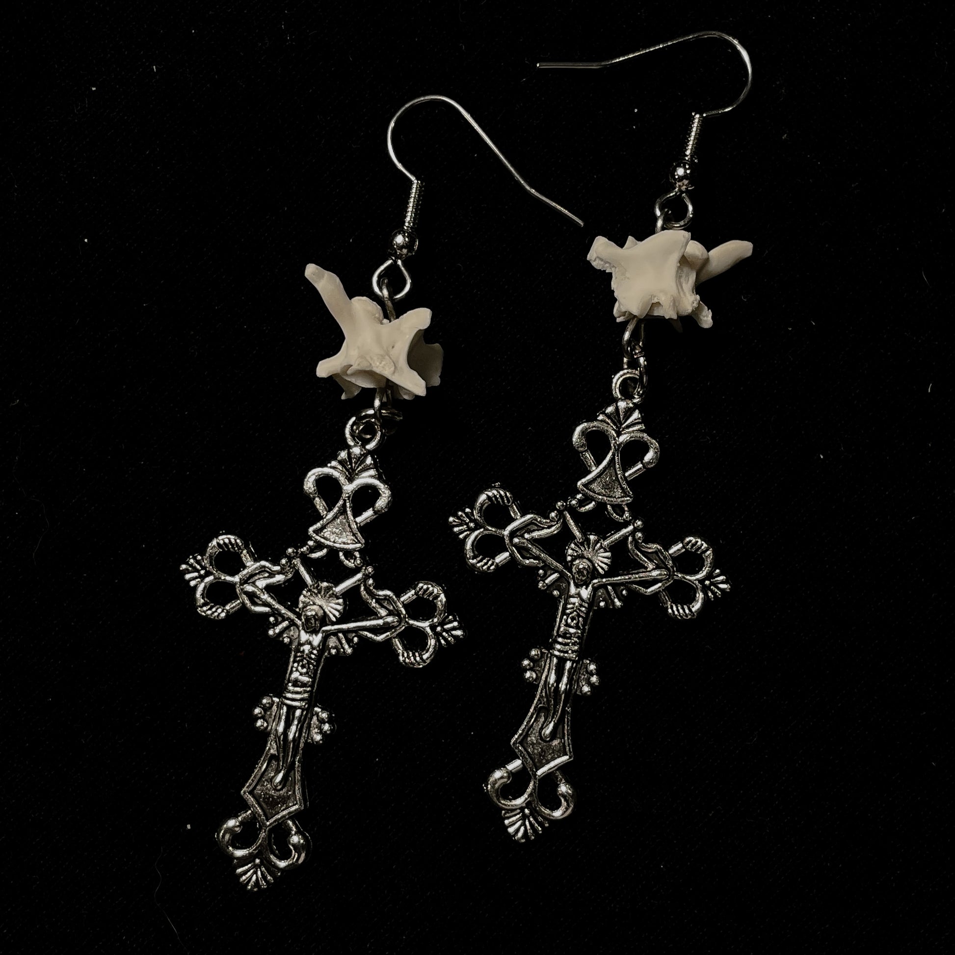 ✧ One of a kind cross earrings with real rattlesnake vertebrae bones! These are sale earrings that I likely won't carry again since I'm clearing out some stock