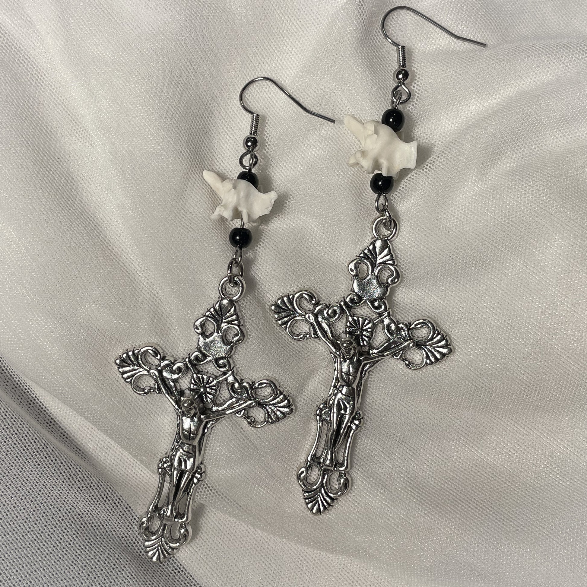 ✧ One of a kind cross earrings with real rattlesnake vertebrae bones! These are sale earrings that I likely won't carry again since I'm clearing out some stock