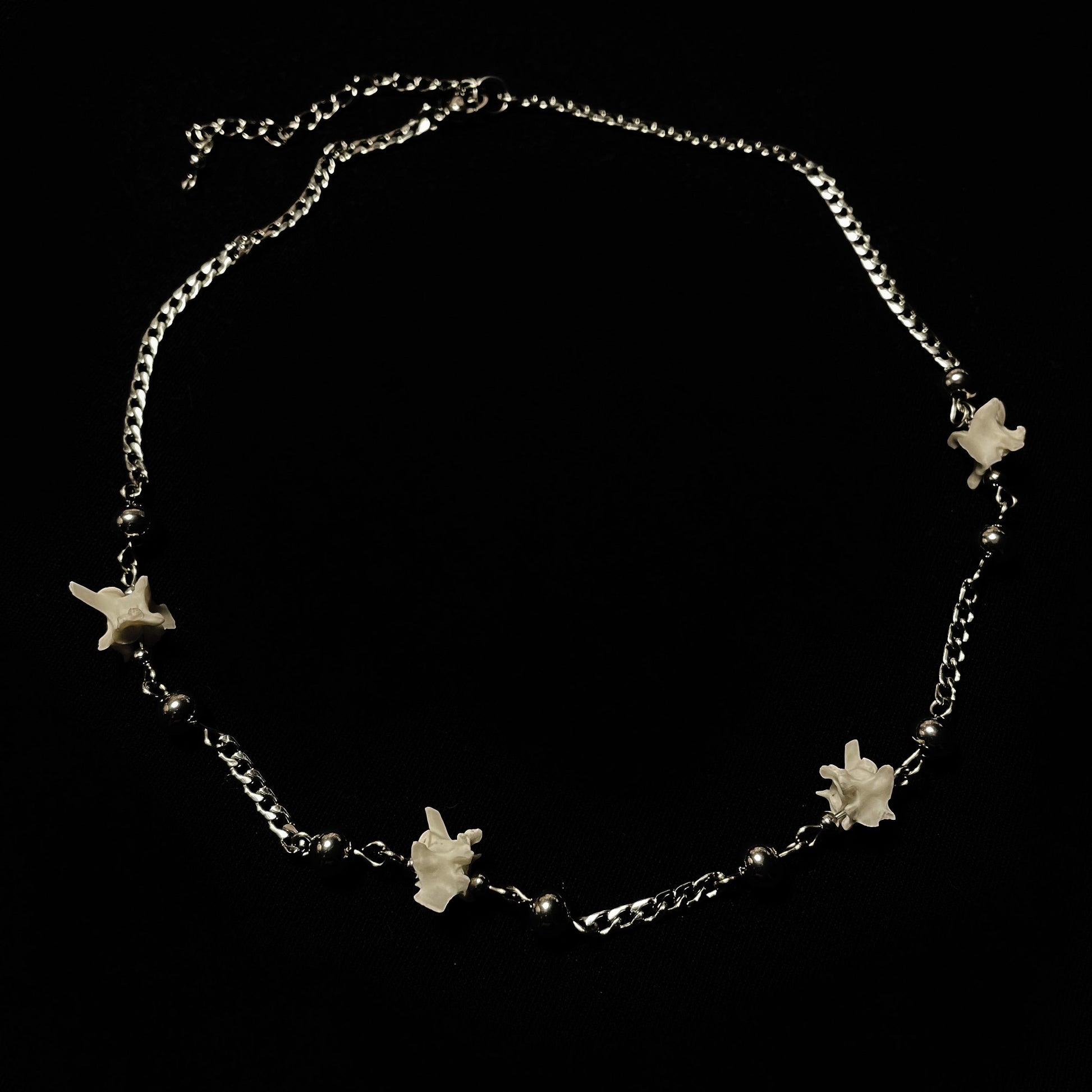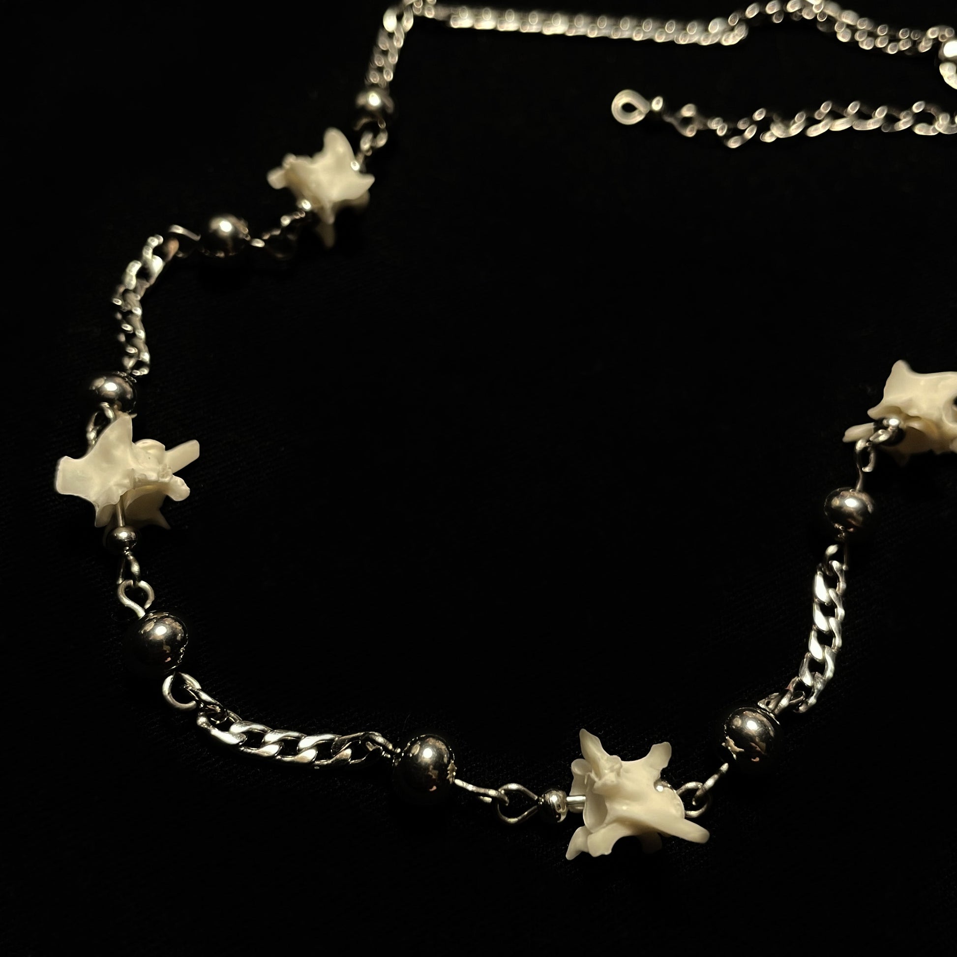 ✧ Stainless steel chain with real rattlesnake vertebrae and beads.