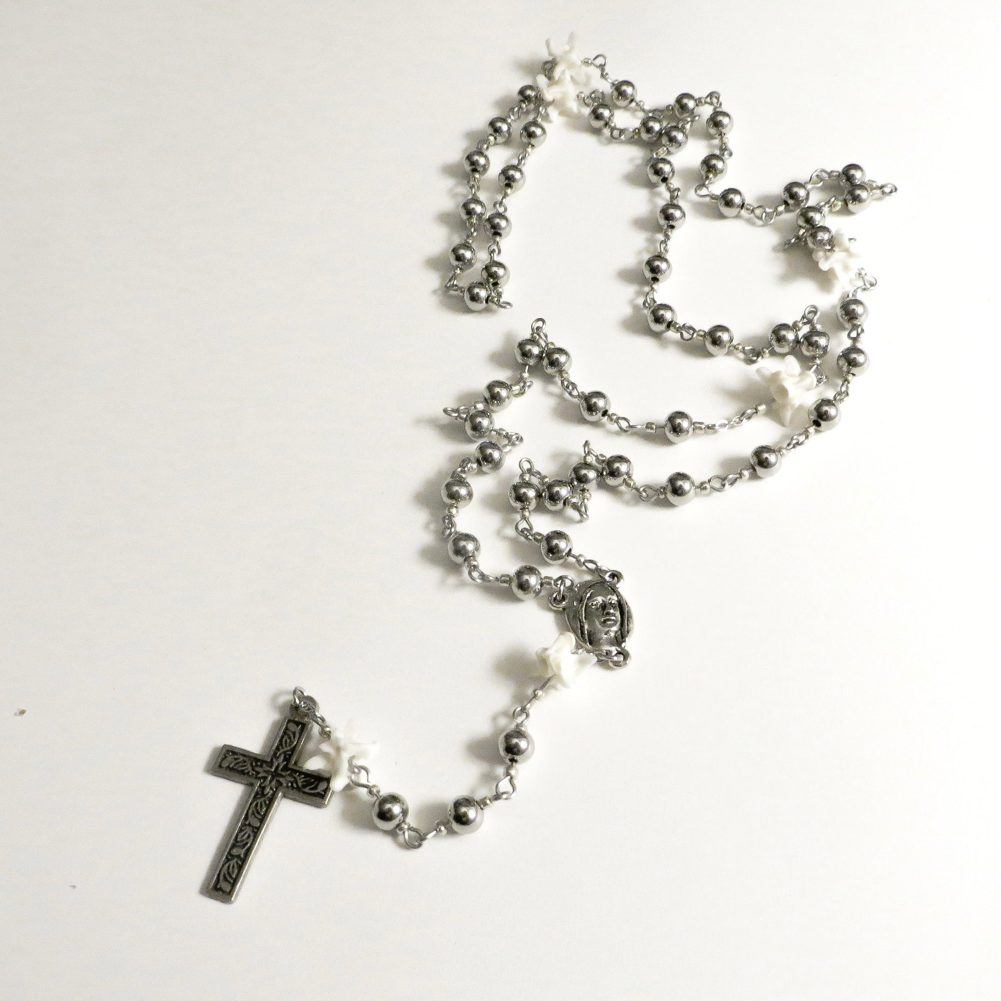✧ Rosary made out of stainless steel beads and hardware, with real snake vertebrae bones, and vintage centerpiece and cross pendant. Photos featured are an example of a similar piece to what you will receive, though each rosary is unique.