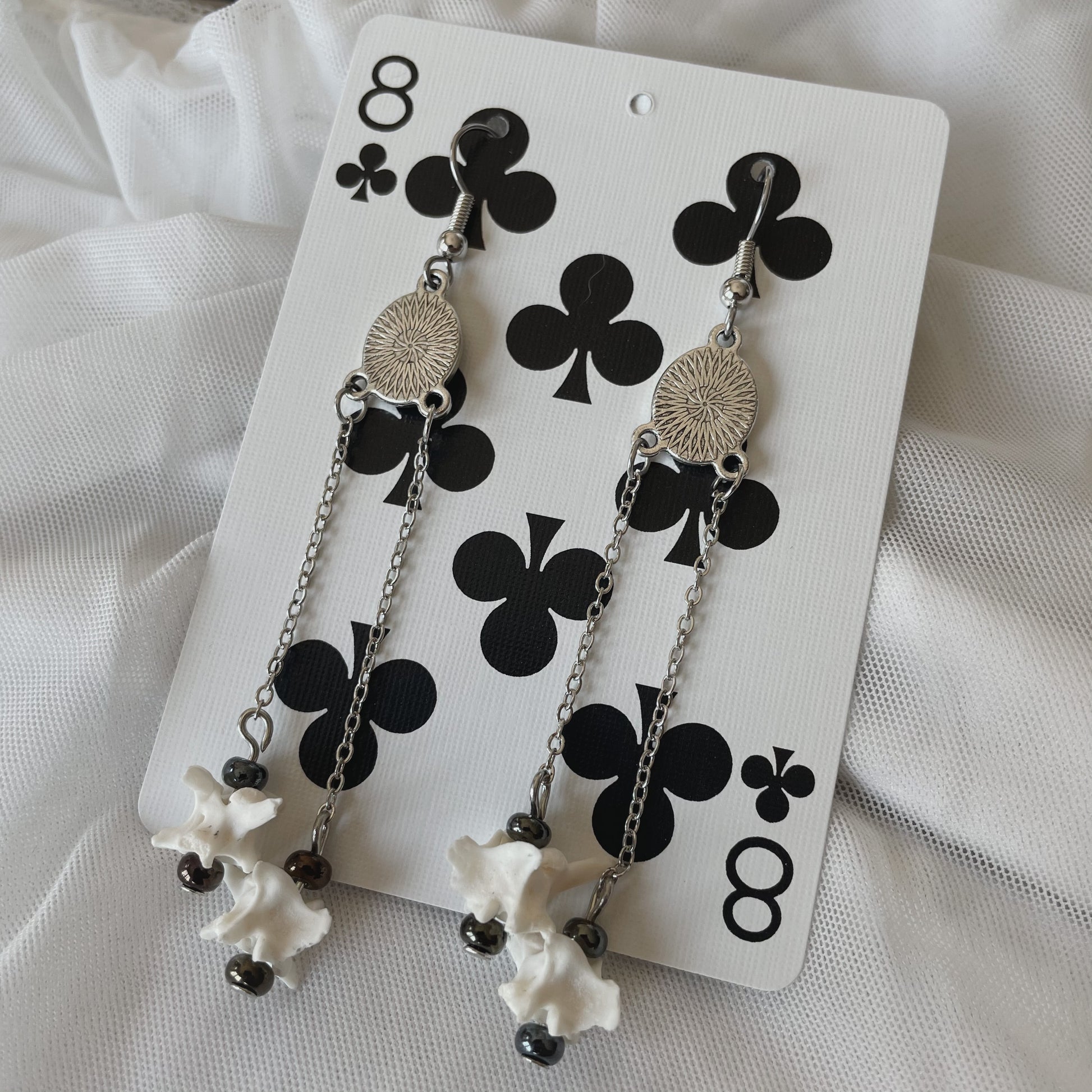 ✧ Twin Bone dangle earrings w/ black metallic beads at the bottom