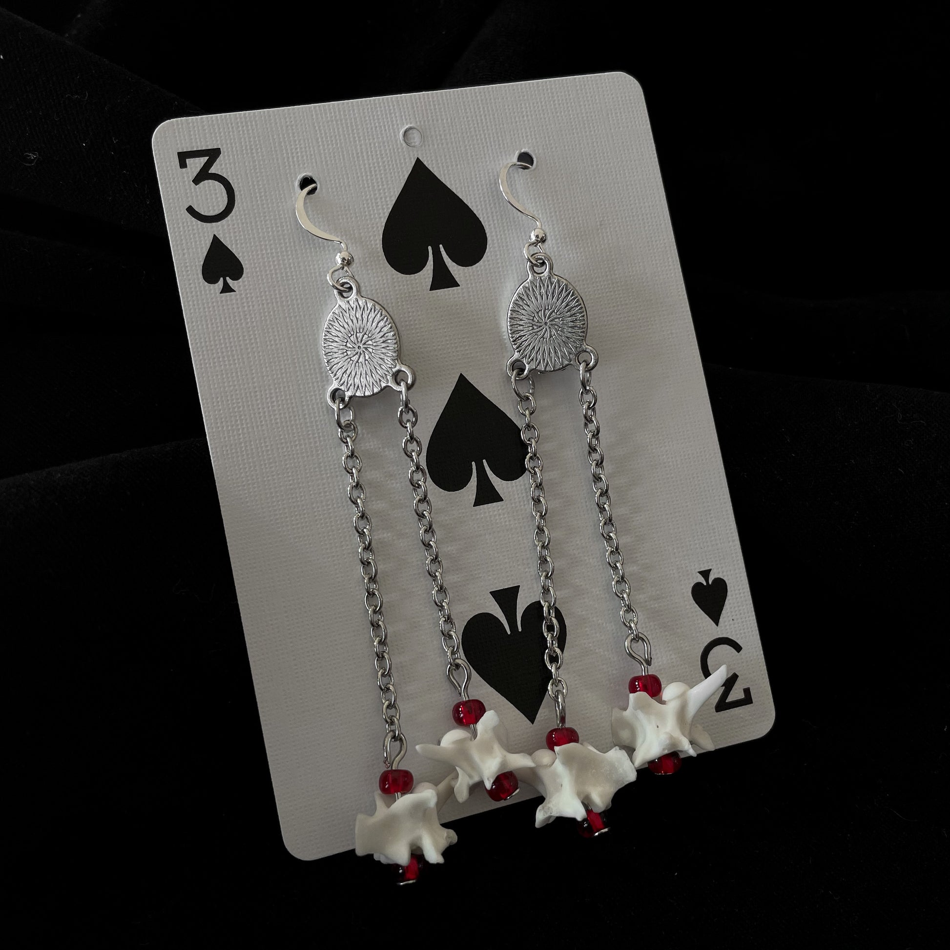 ✧ Twin Bone dangle earrings w/ red beads at the bottom