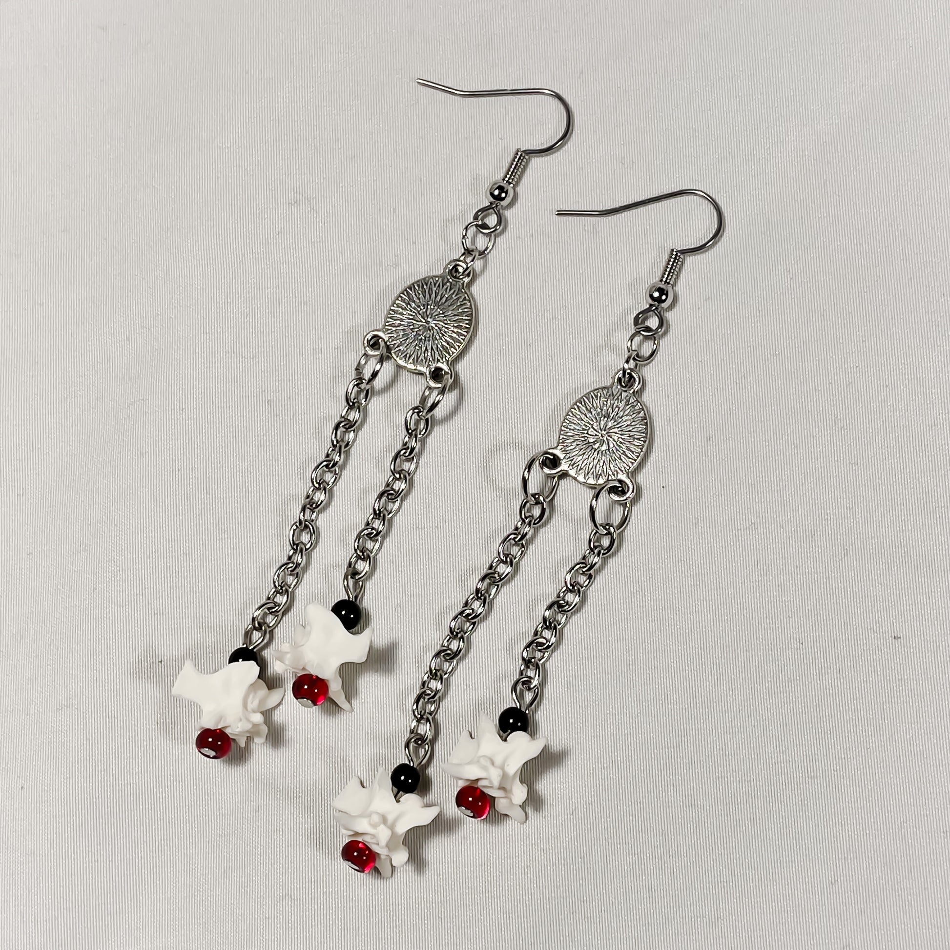 ✧ Twin Bone dangle earrings w/ red beads at the bottom