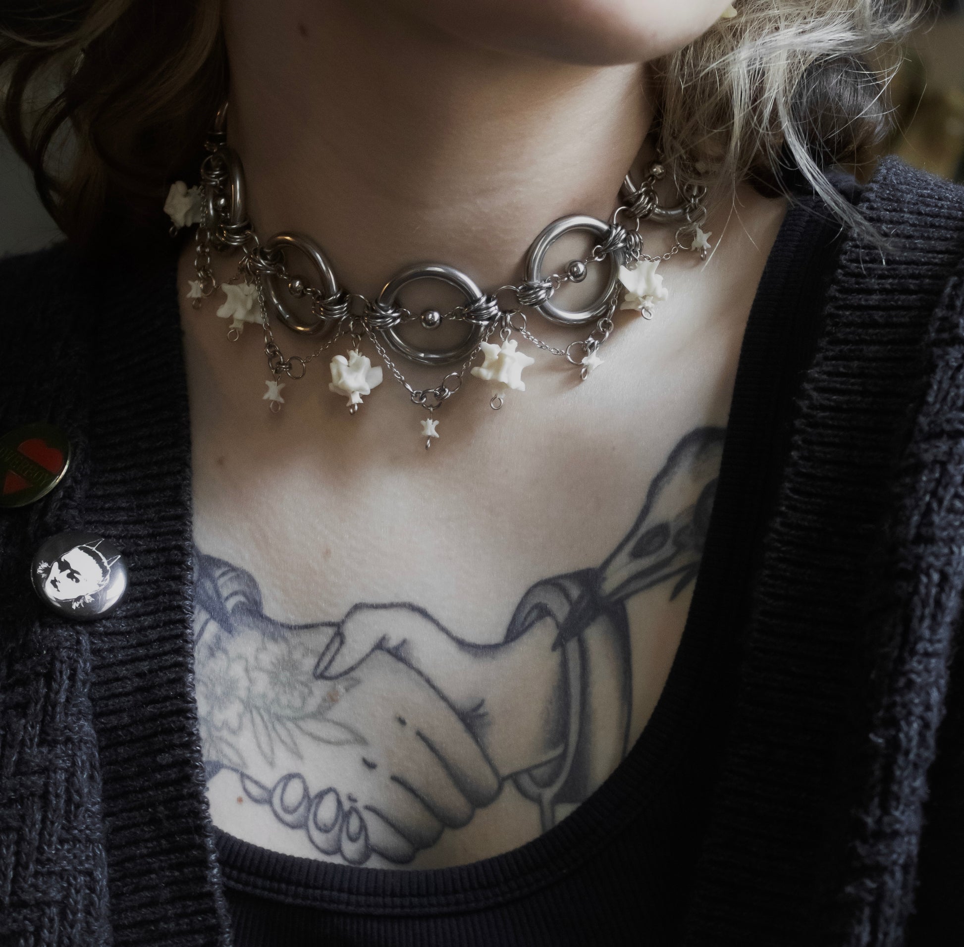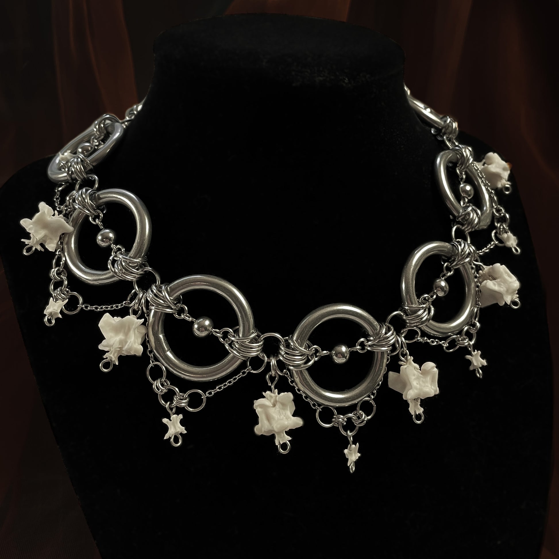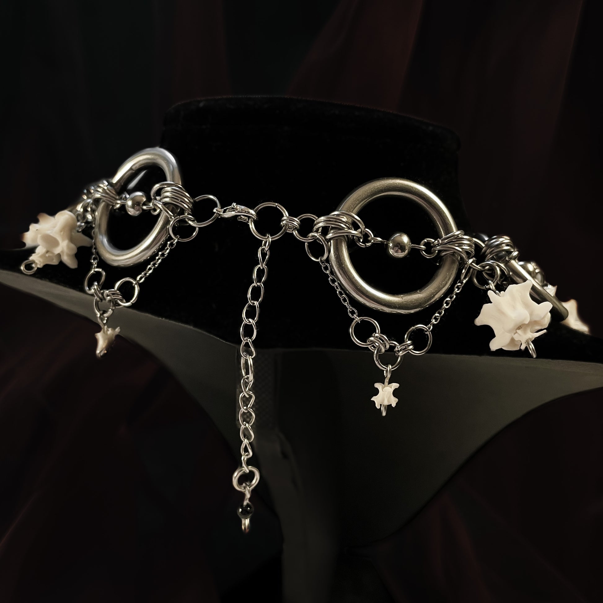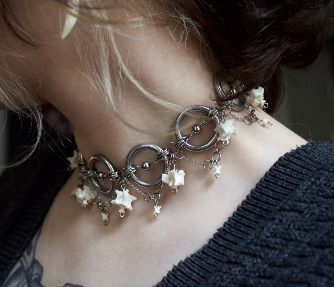 ✧ O-ring based choker made with real snake vertebrae bones and stainless steel